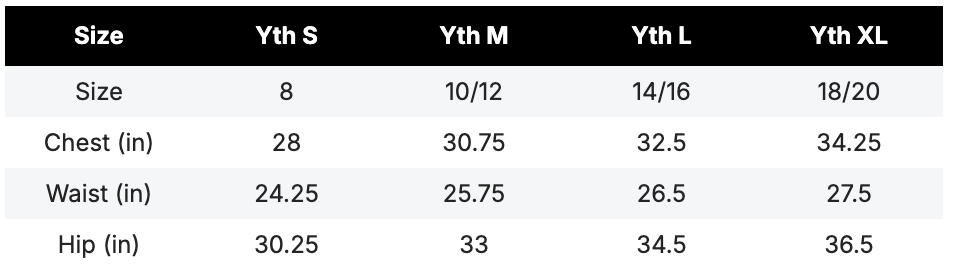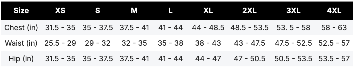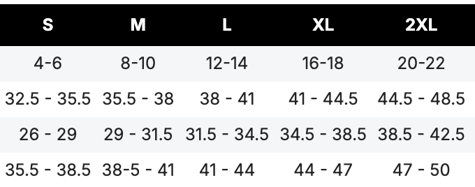 Size chart: